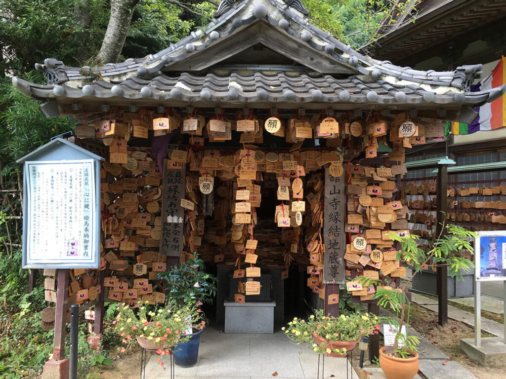 多くの絵馬が奉納されている縁結び地蔵があり、恋愛成就のパワースポットとして知られています。