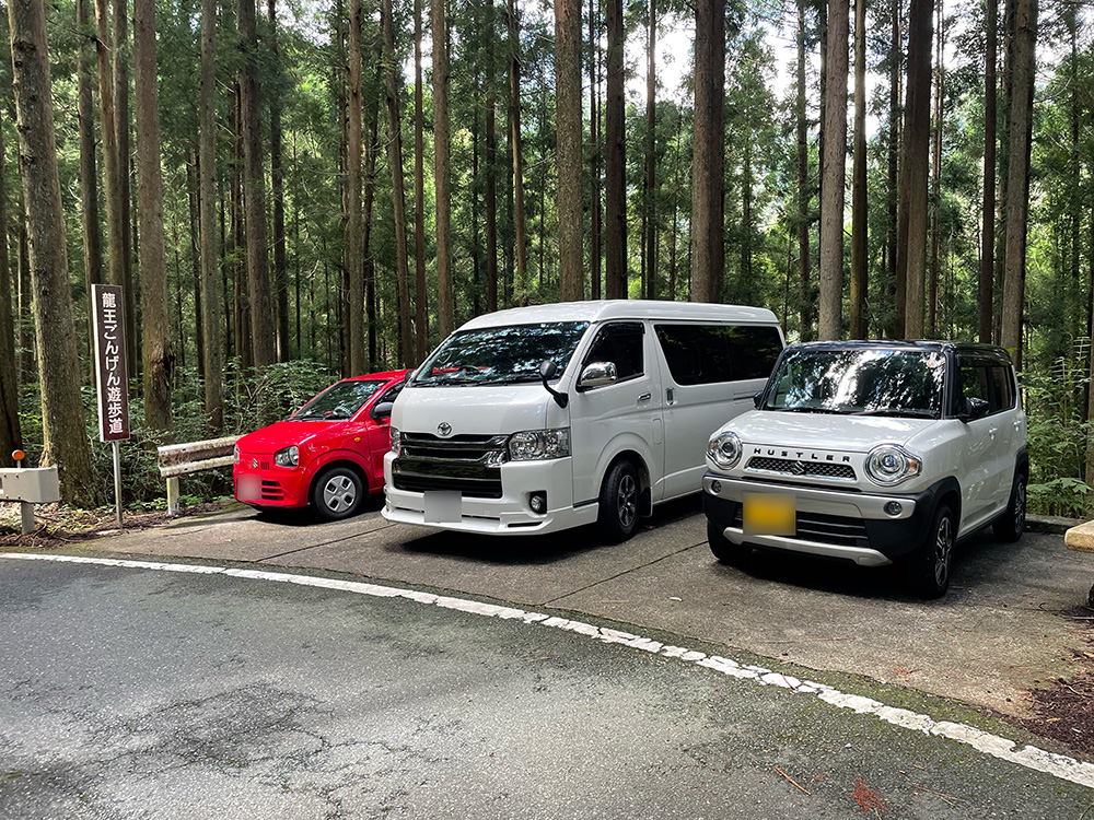 国道473号線から県道290号線へ入り、約5分ほど山道を登ると、滝見駐車場に到着します。